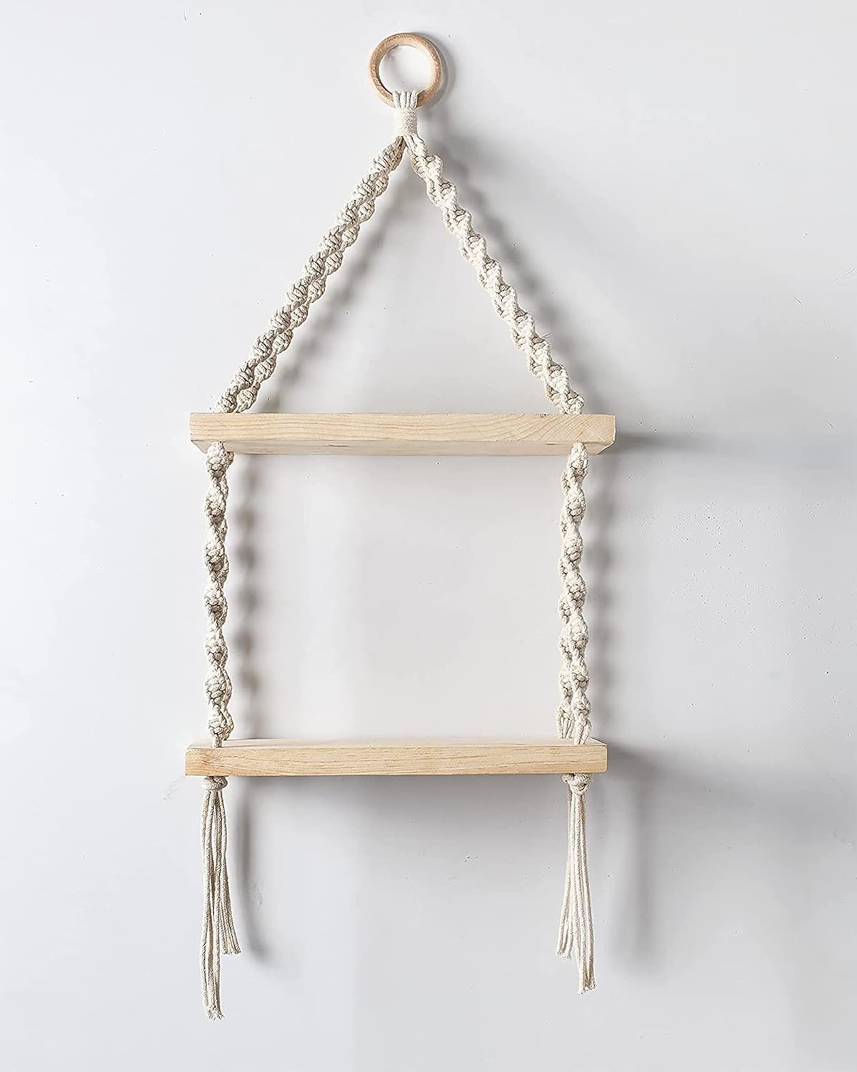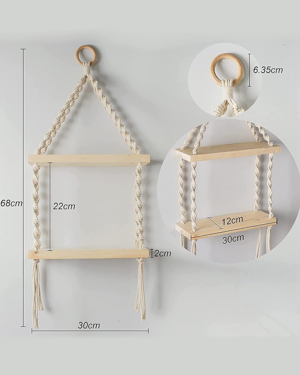 Easy to hang using the sturdy Metal ring , it’s both lightweight and strong. Handmade knots add a unique aesthetic, making it not just a shelf but a piece of boho wall art.