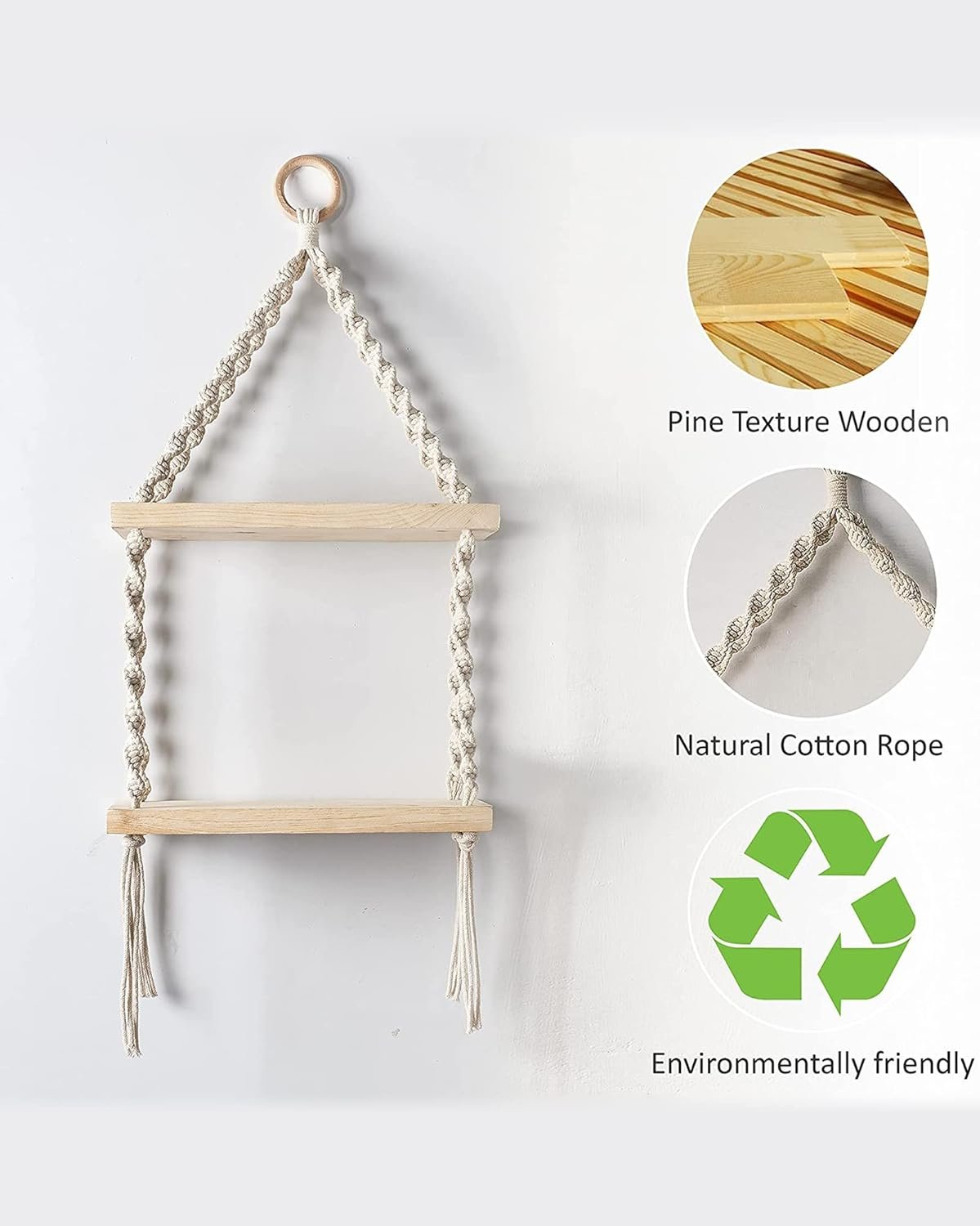 Bring warmth, texture, and function to your walls with our 3-Tier Macrame Wooden Floating Wall Shelf. Expertly crafted using durable cotton rope and eco-friendly pinewood, this bohemian-inspired shelf adds a cozy and artistic flair to any room. With its neutral tones and organic materials, it effortlessly blends with modern, rustic, farmhouse, or minimalist interiors.