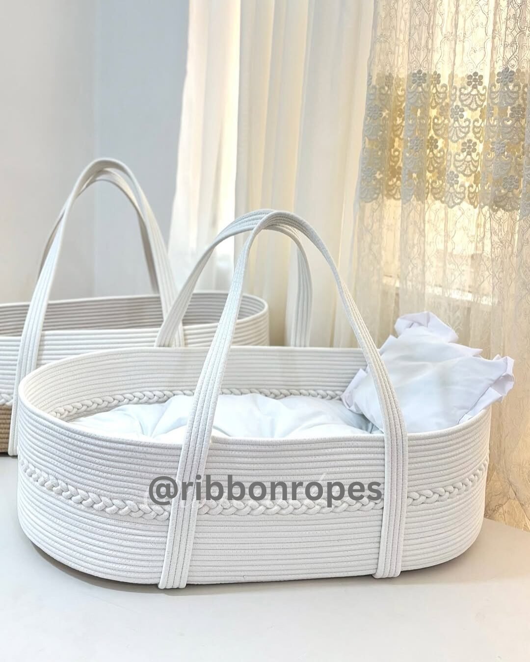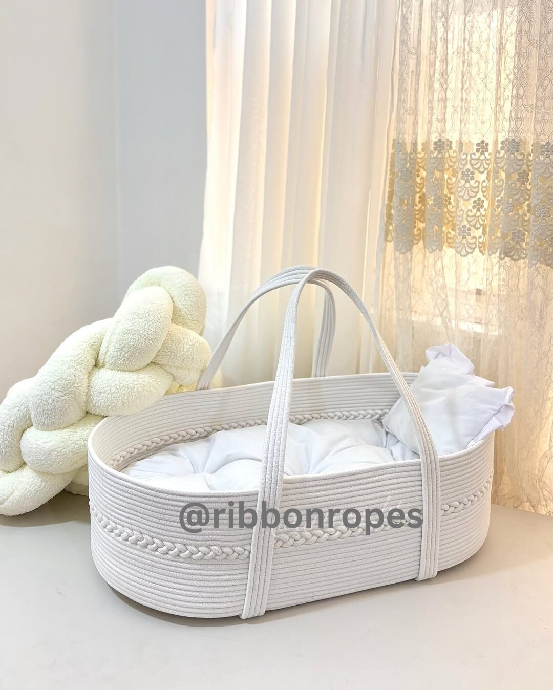 Experience the perfect blend of style, functionality, and convenience with this handcrafted cotton rope baby changing basket. Designed for newborns and infants, this Moses basket provides a comfortable and secure space for diaper changes, lounging, and storage.