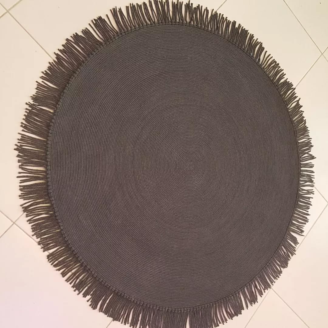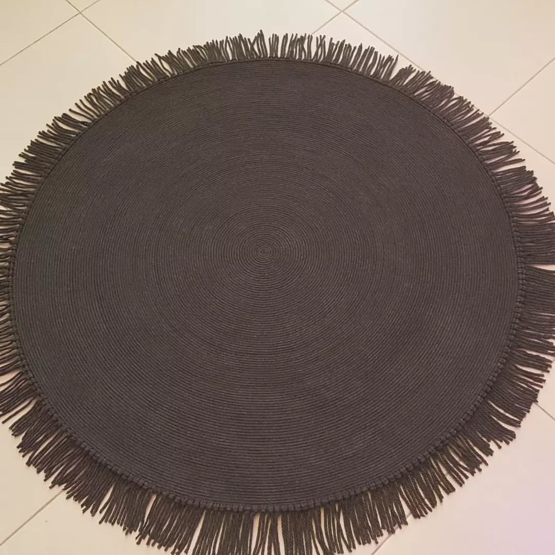Add timeless charm to your home with this Black Cotton Rope Tassel Rug, a handcrafted circular rug made with thick, eco-friendly cotton rope. This beautiful round mat with elegant tassel edges is available in three convenient sizes: