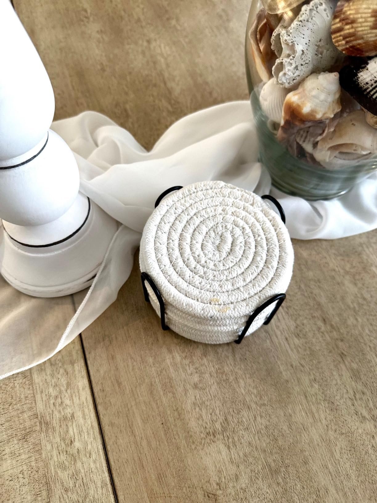 Add charm and function to your table with these handcrafted cotton rope coasters. Available in sets of 4 and 6, they offer 100% protection against stains, scratches, and heat damage. Stylish, sustainable, and super absorbent!