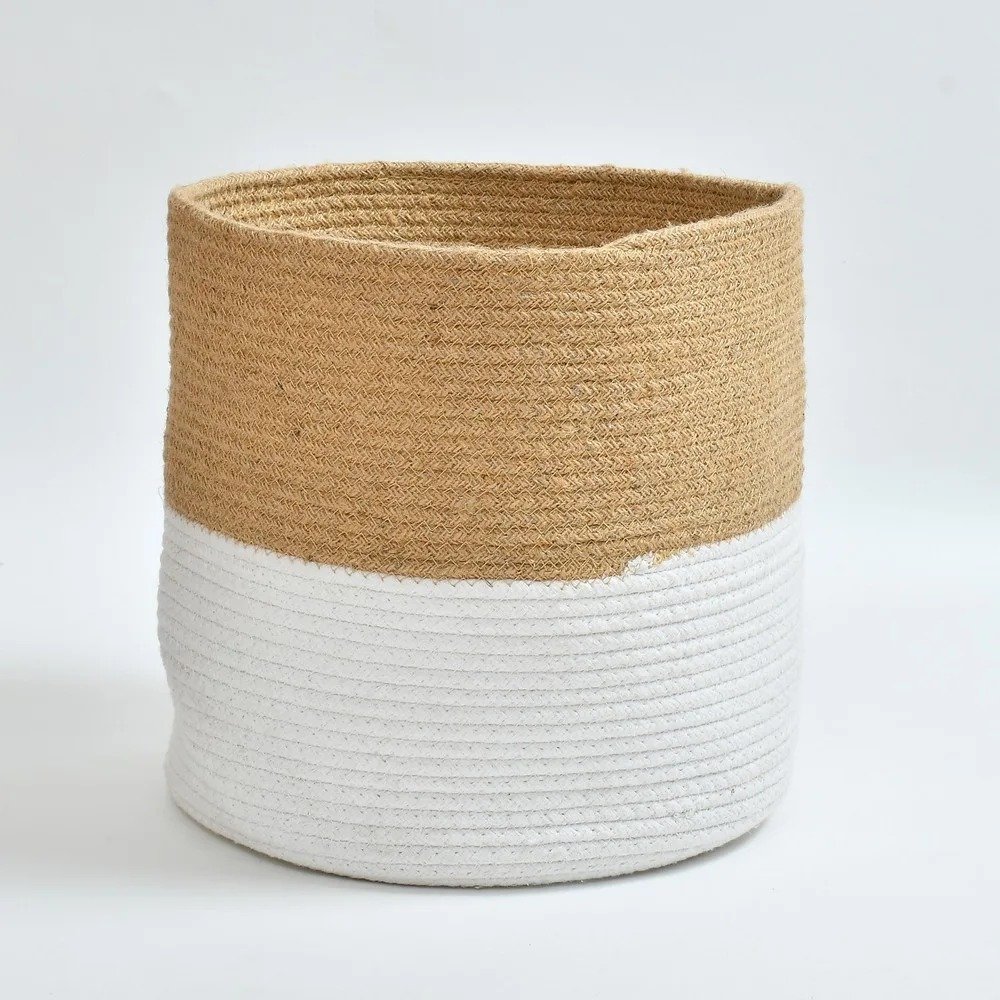 Bring functionality and style to your home with this cotton rope and jute basket, crafted to suit both modern decor and practical needs. Measuring 12″ x 12″, this basket is the perfect size for use as a planter for indoor greenery or as a versatile storage solution for toys, books, blankets, or magazines.