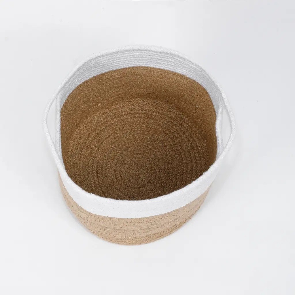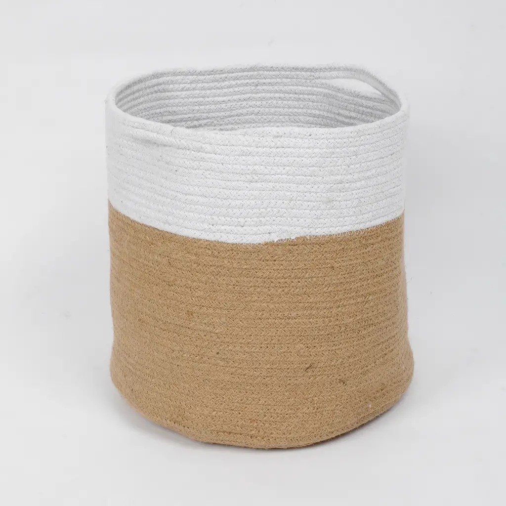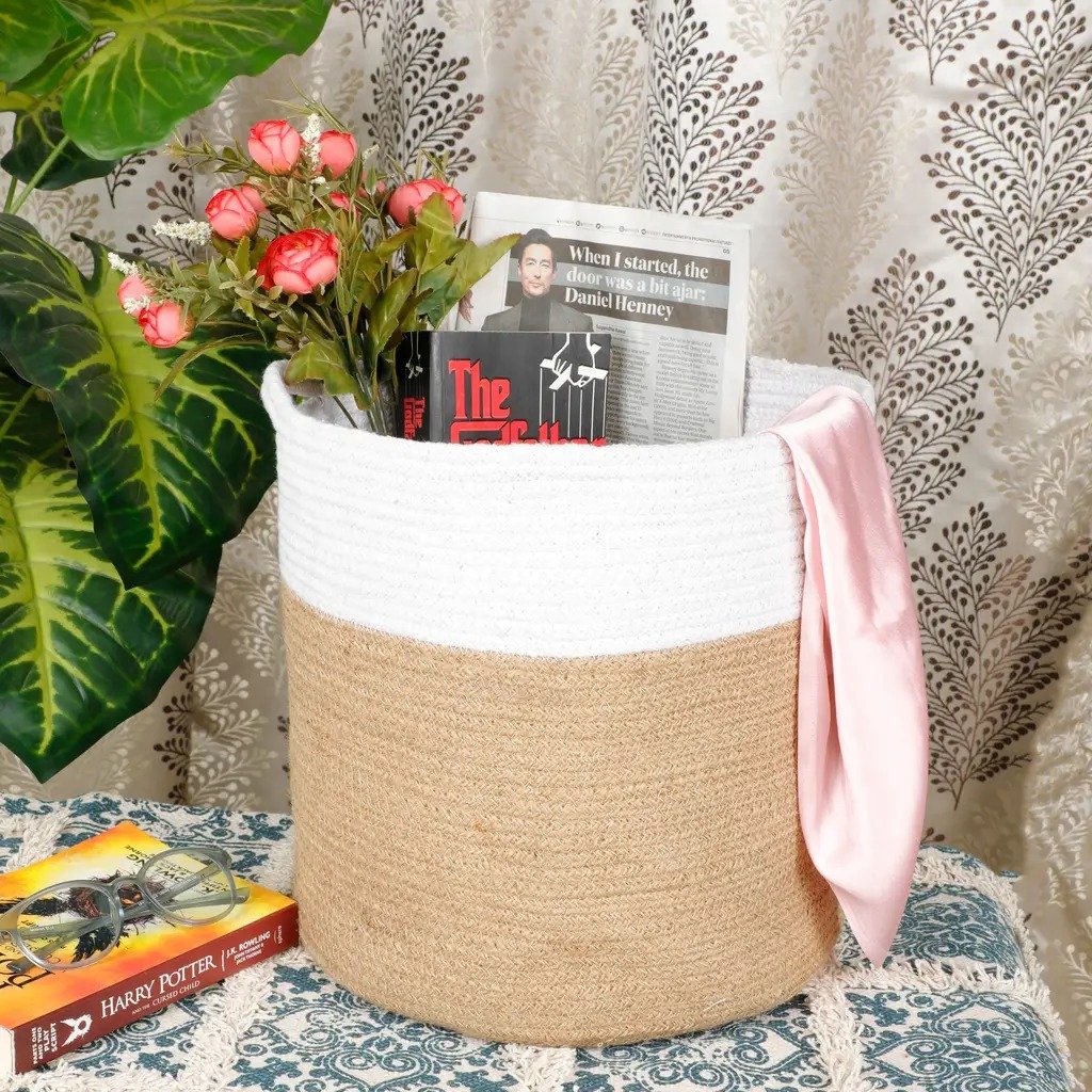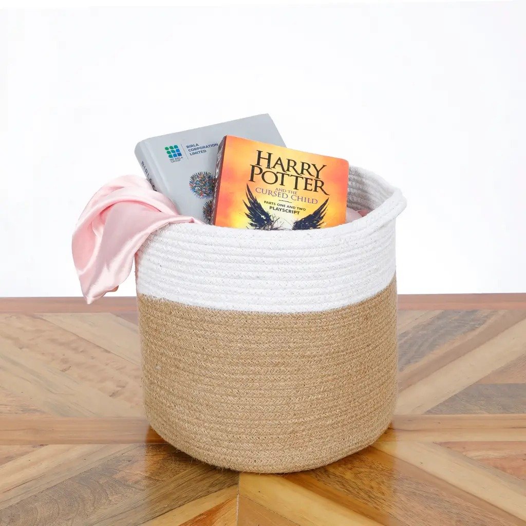 Choose from two beautiful two-tone designs that blend seamlessly into minimalist, boho, or rustic interiors. Handwoven with a combination of natural jute and durable cotton rope, these baskets are eco-friendly, lightweight, and sturdy enough for everyday use.
