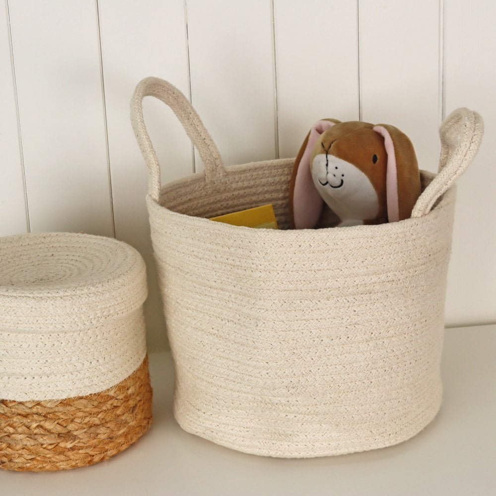 Upgrade your home organization with these cotton rope laundry and storage baskets with handles, available in two versatile sizes. Crafted from 100% natural cotton rope, these baskets are durable, eco-friendly, and designed to bring both functionality and style to your living space.