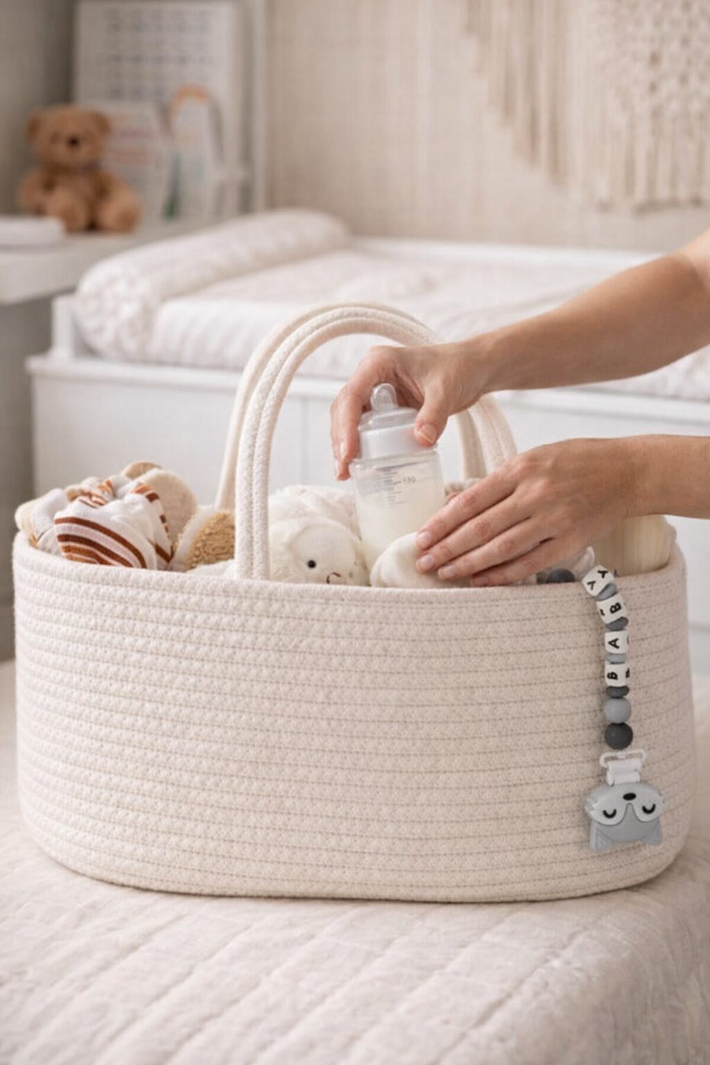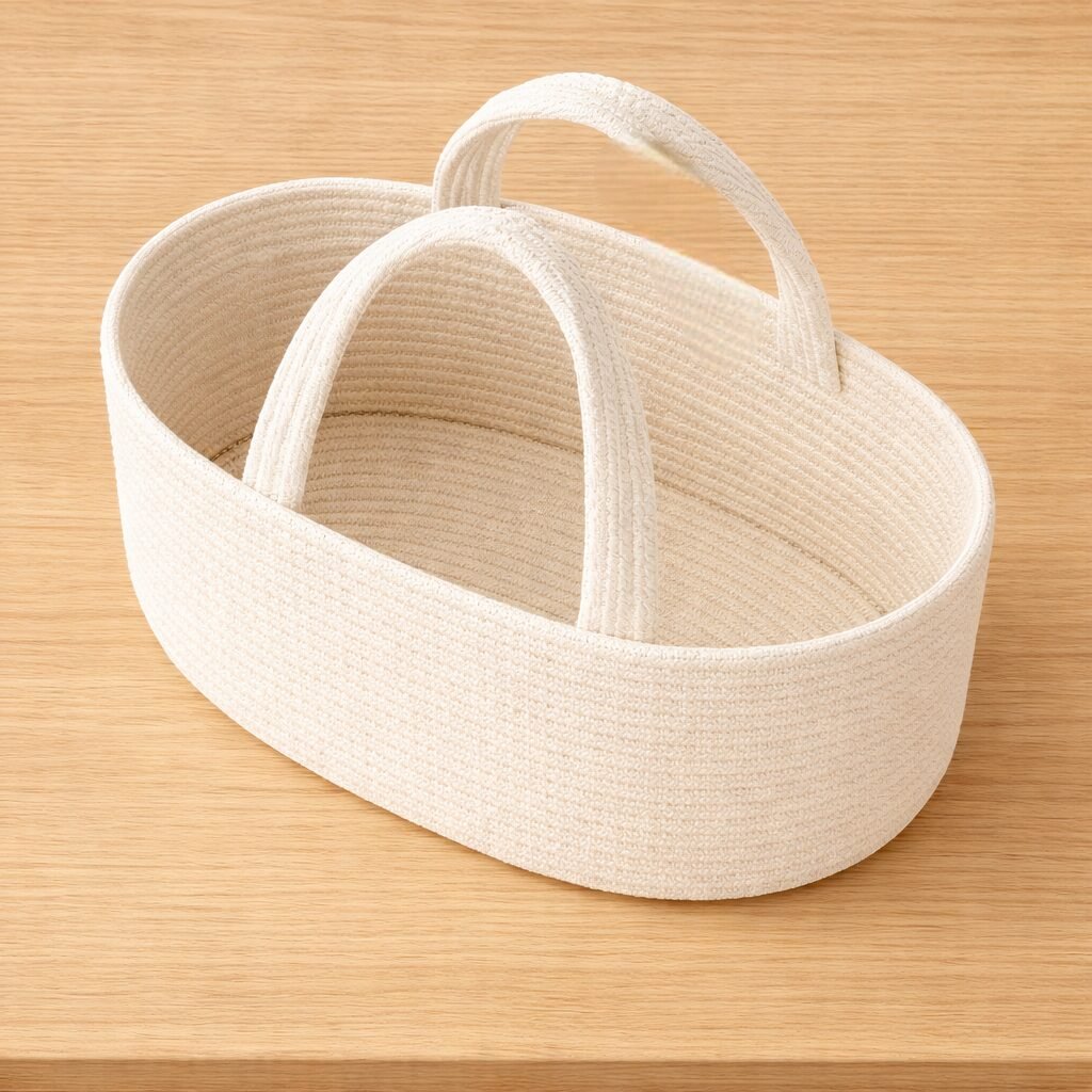 Designed with a soft yet sturdy structure, this large oval basket is perfect for diapers, toys, blankets, lotions, and daily baby essentials — all in one elegant storage solution.