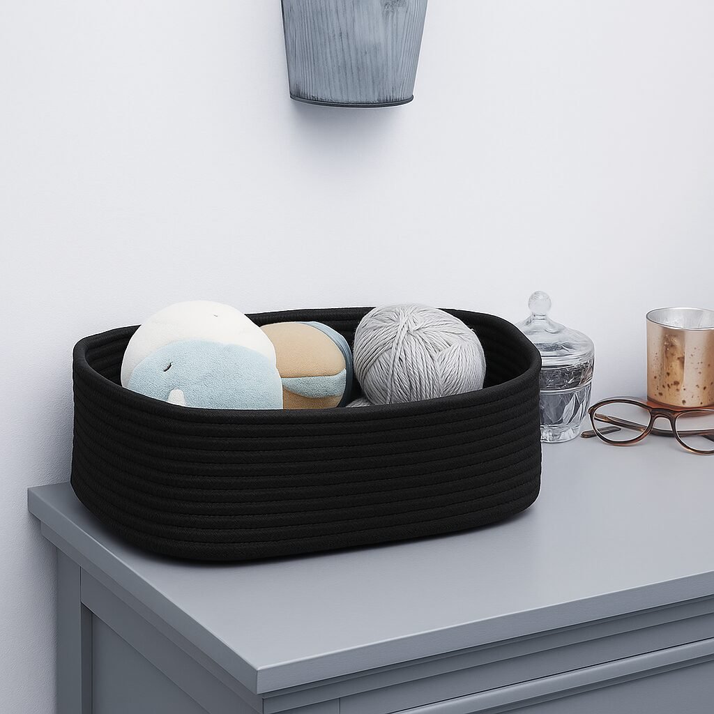 Transform your home into a clutter-free haven with this versatile cotton rope storage basket. Crafted from 100% natural, eco-friendly cotton rope, this basket is both stylish and functional, making it perfect for nurseries, bathrooms, kids’ rooms, or living spaces.
