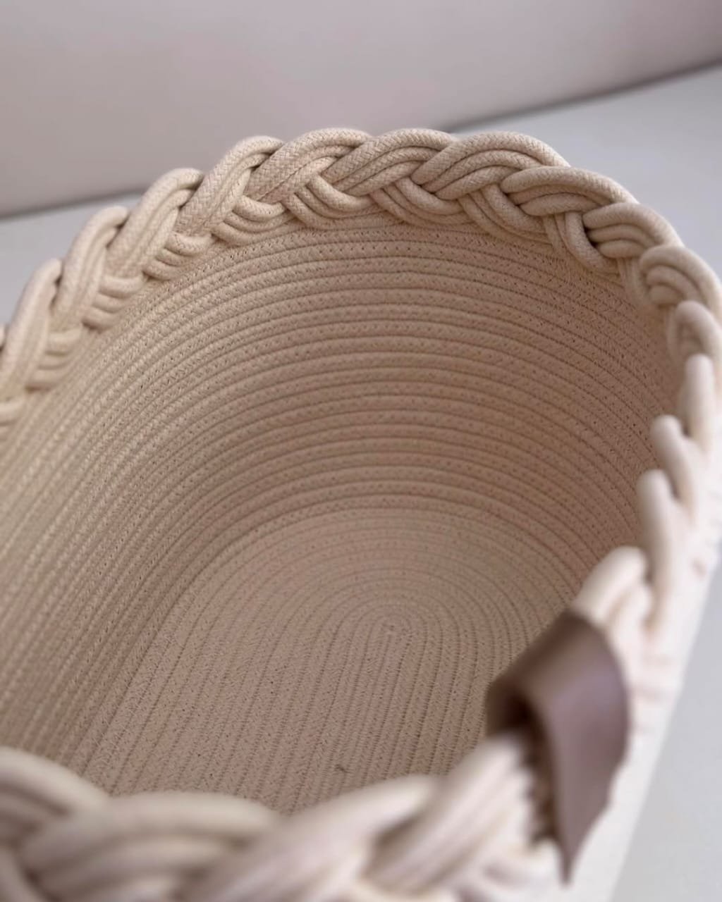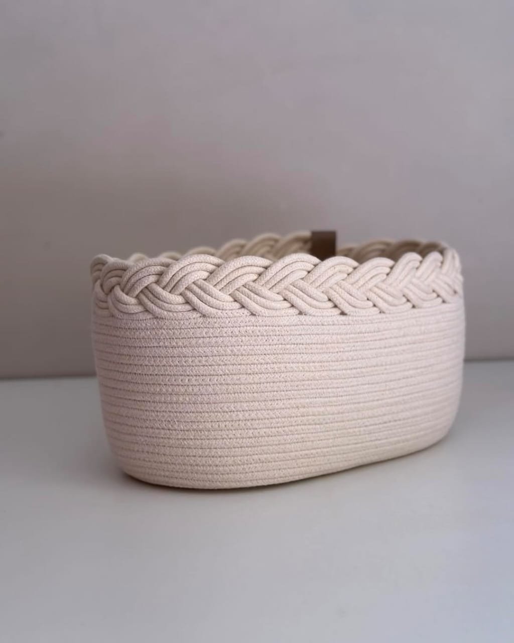 Declutter your space in style with this elegant braided cotton rope storage basket. Handcrafted with 100% natural cotton rope, this durable and eco-friendly organizer is designed to add both functionality and sophistication to your home. The beautiful braided rim design enhances its aesthetic appeal, making it a versatile addition to bathrooms, bedrooms, nurseries, or living spaces.