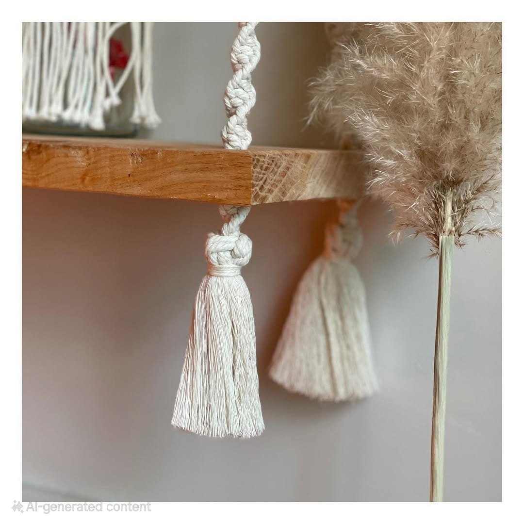 Enhance your home decor with this beautifully crafted macrame hanging shelf, designed to bring boho elegance and functional storage to your walls. The 15-inch wooden shelf is supported by hand-knotted macrame rope, ensuring a sturdy yet lightweight structure. The natural cotton tassels add a charming touch, making it an eye-catching piece for minimalist, farmhouse, or bohemian-style interiors.
