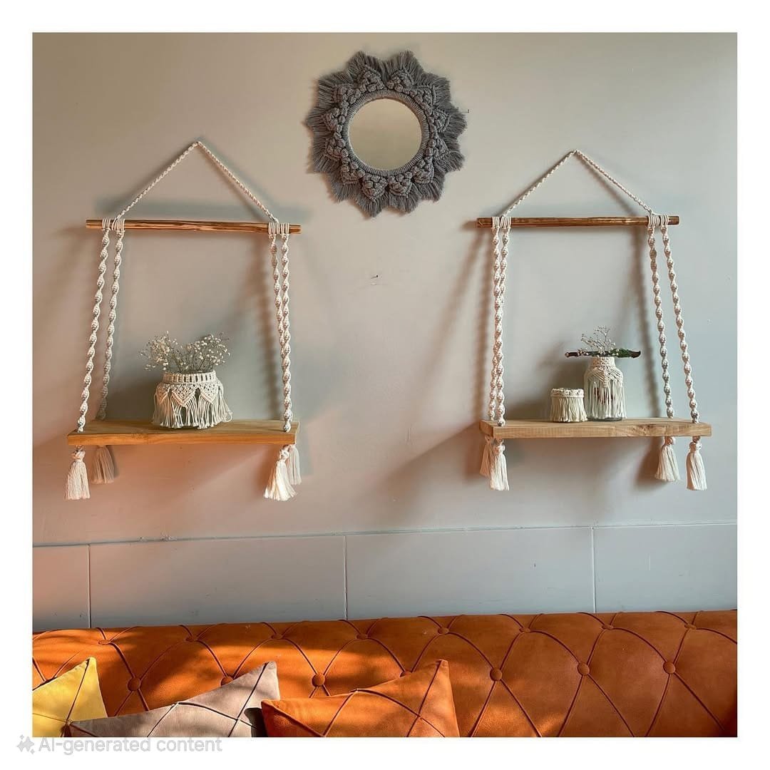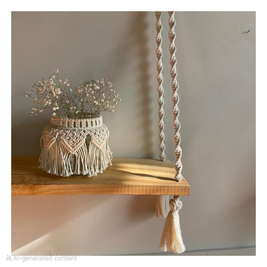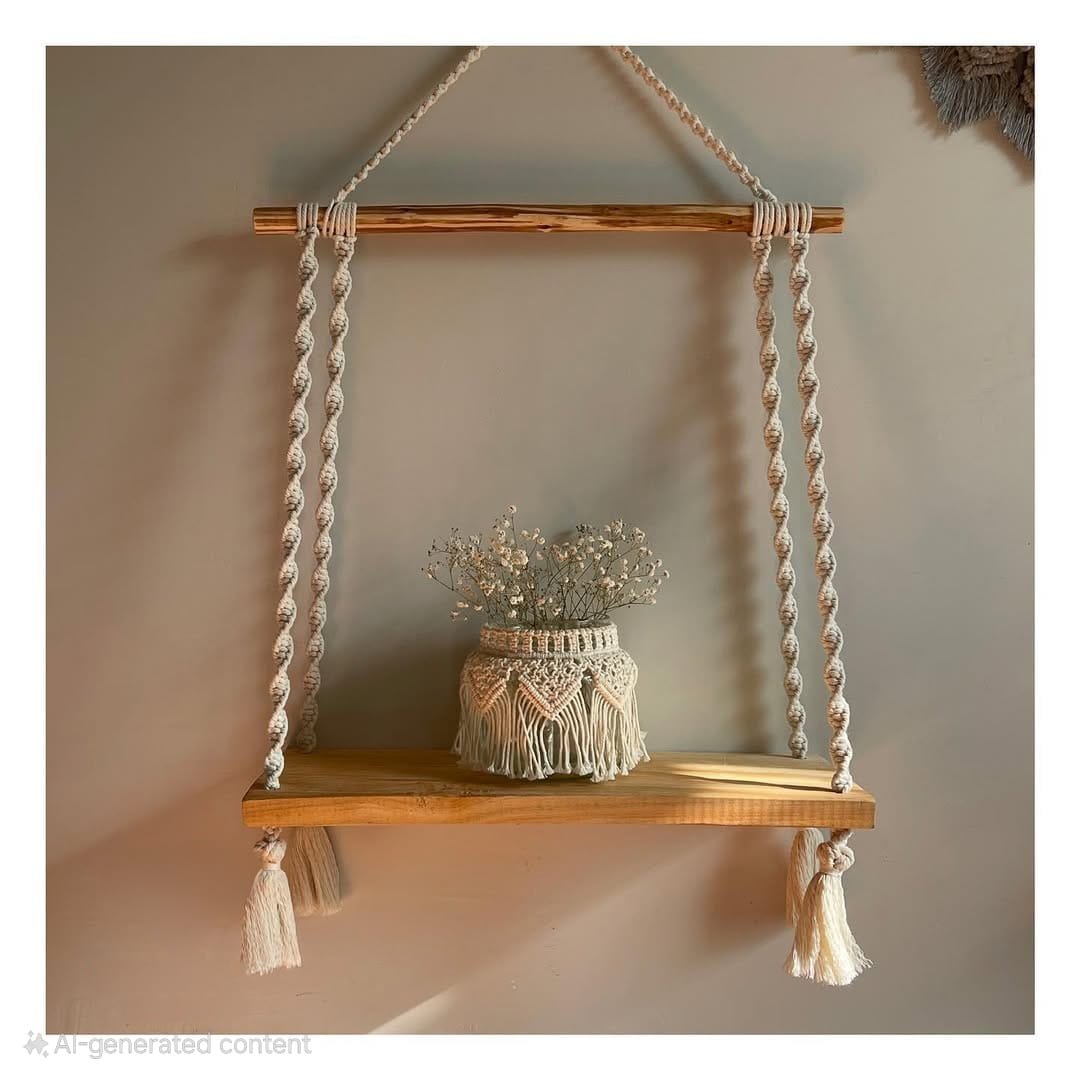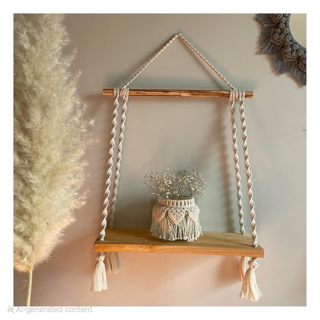 Handmade Macrame Wooden Shelf – Boho Wall Hanging Shelf