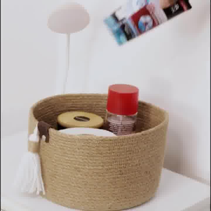Enhance your home organization with this charming handcrafted jute basket, designed to bring natural beauty and practicality to any space. Made from 100% natural, eco-friendly jute, this durable basket is ideal for storing toiletries, cosmetics, small household essentials, or even decorative items.