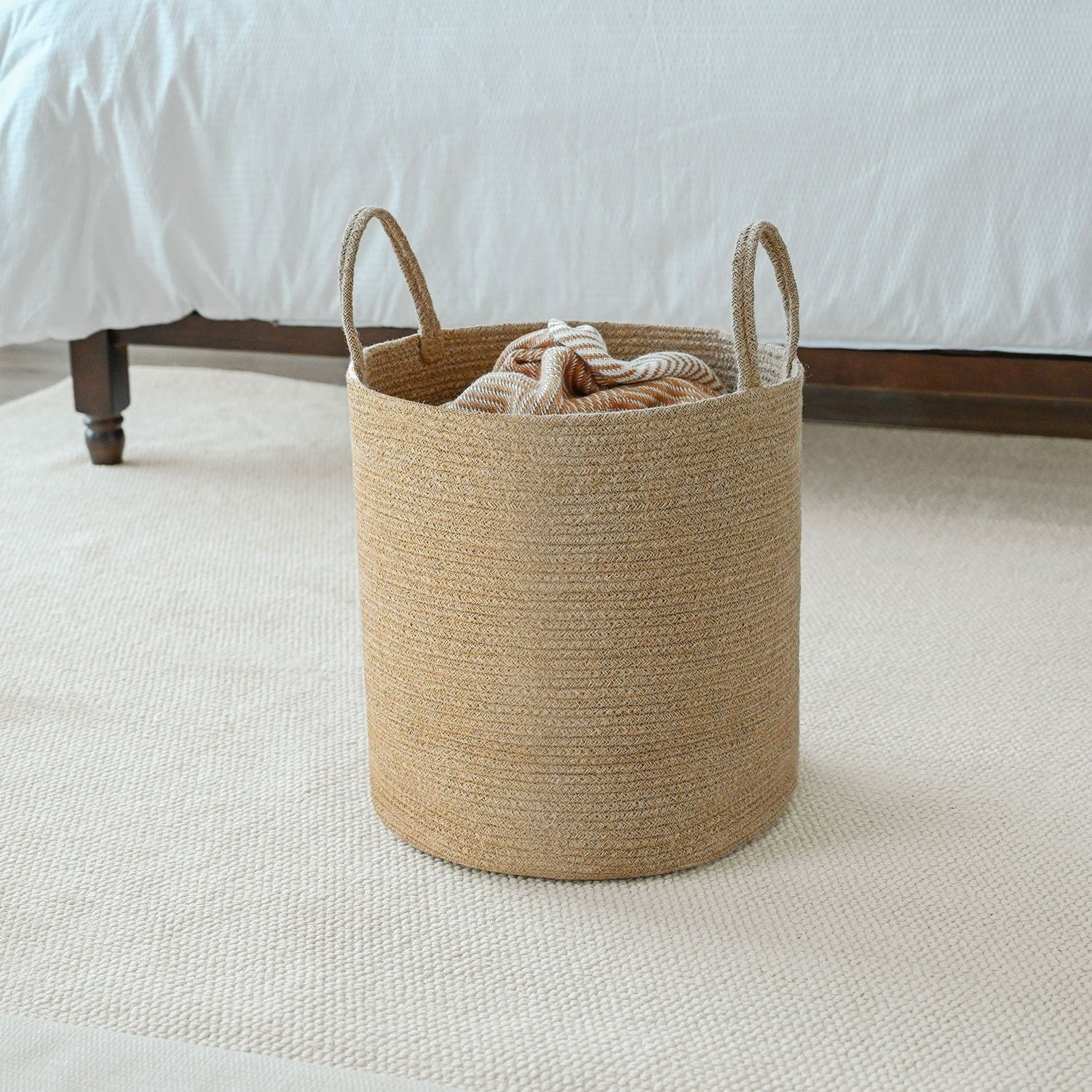 Jute Laundry Basket with Handles – Round Woven Storage Basket