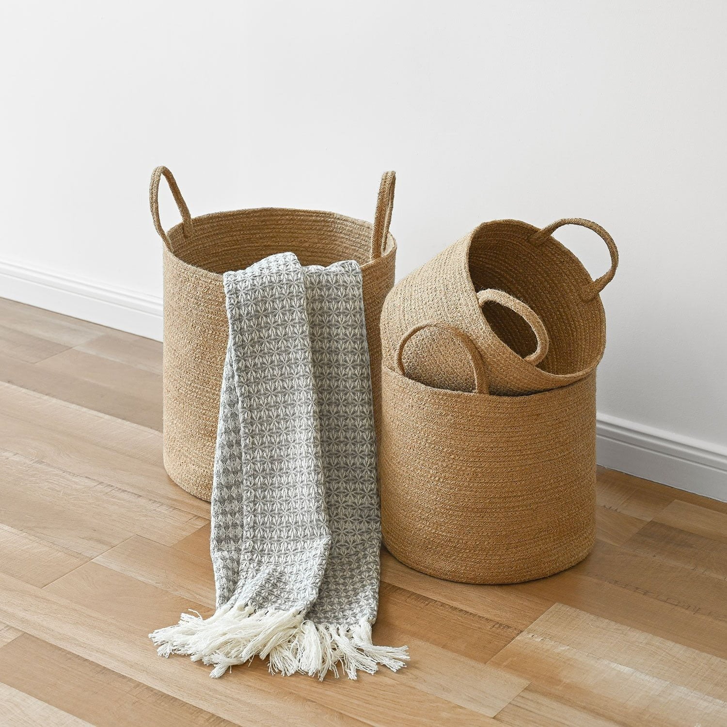 ✔ Jute laundry basket with handles