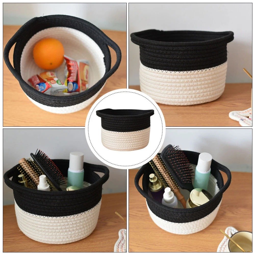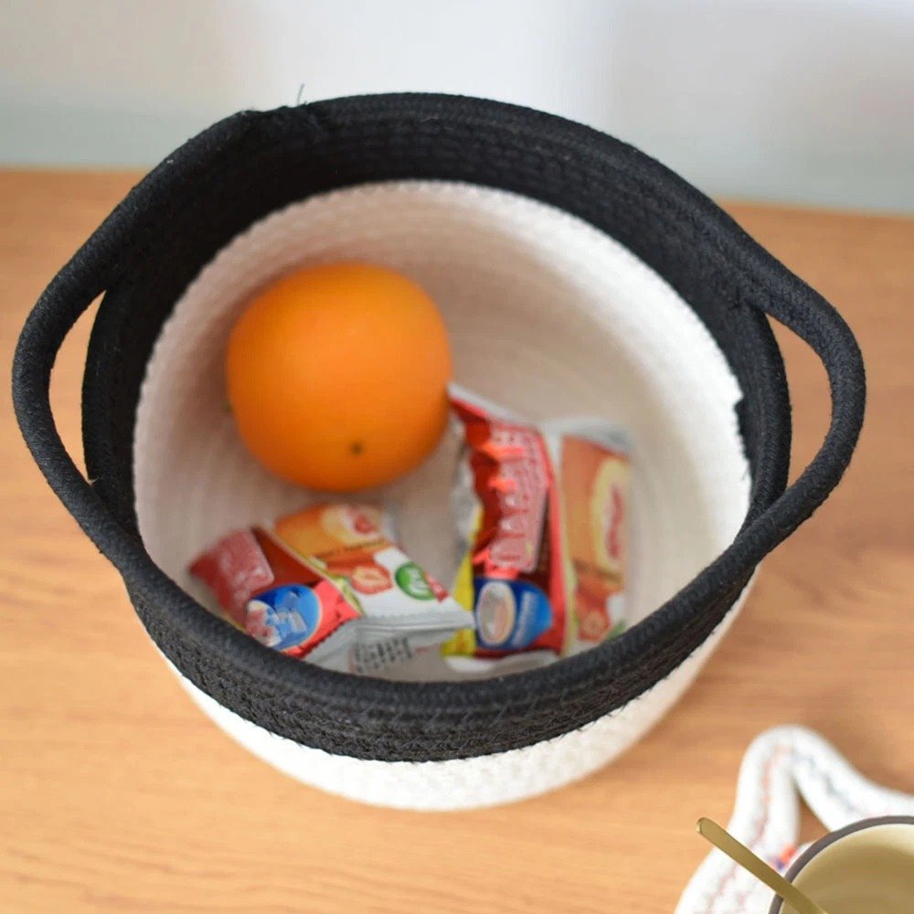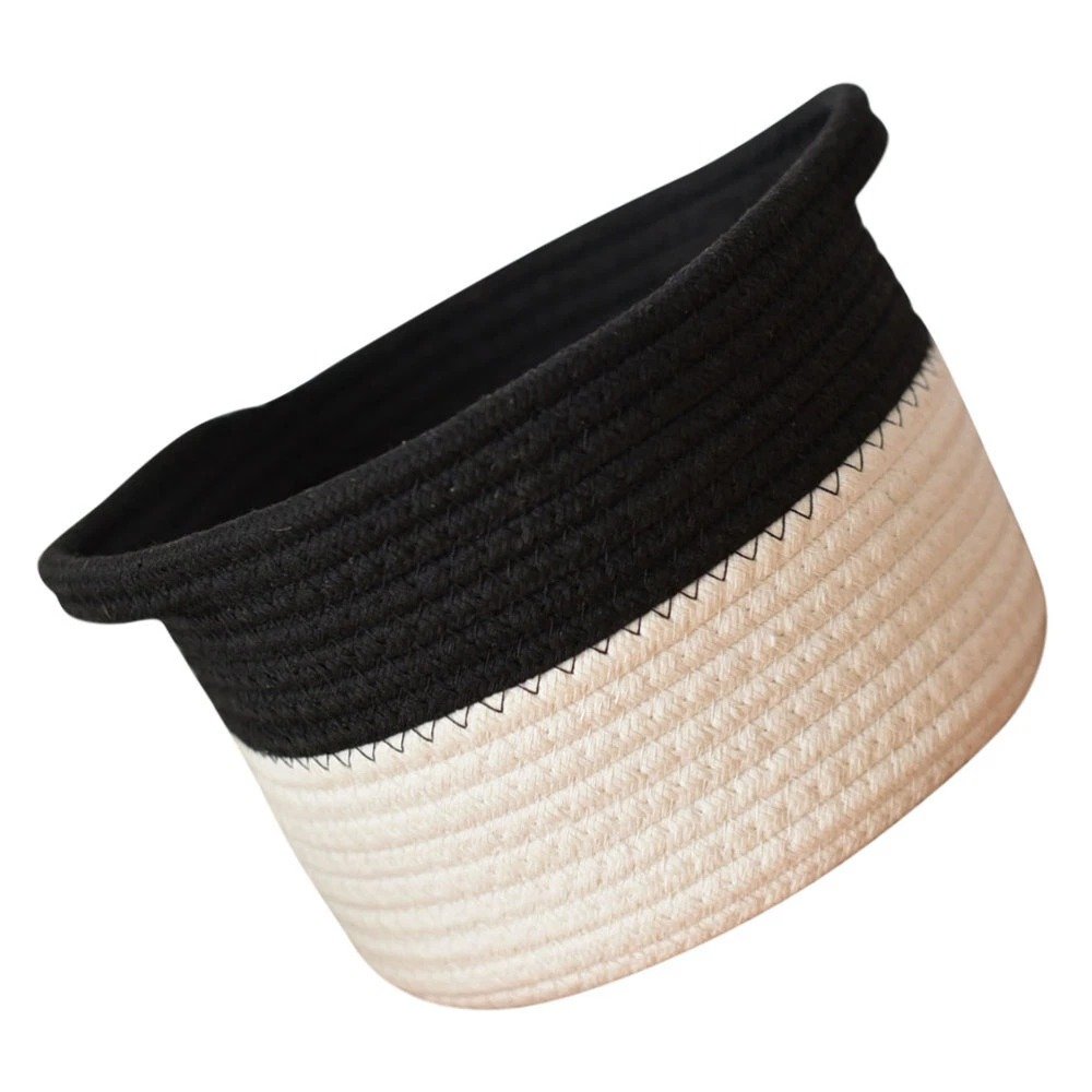 Keep your space tidy and stylish with our Small Black & White Cotton Rope Organizer Basket, crafted from eco-friendly woven cotton. This beautifully designed basket is perfect for storing daily essentials—whether it’s makeup, skincare products, desk items, or snacks.