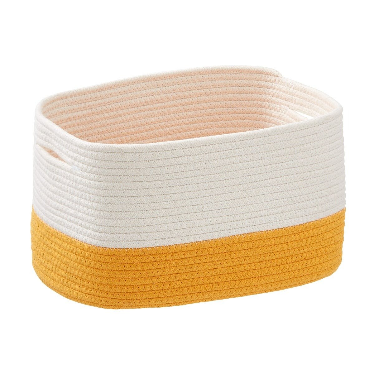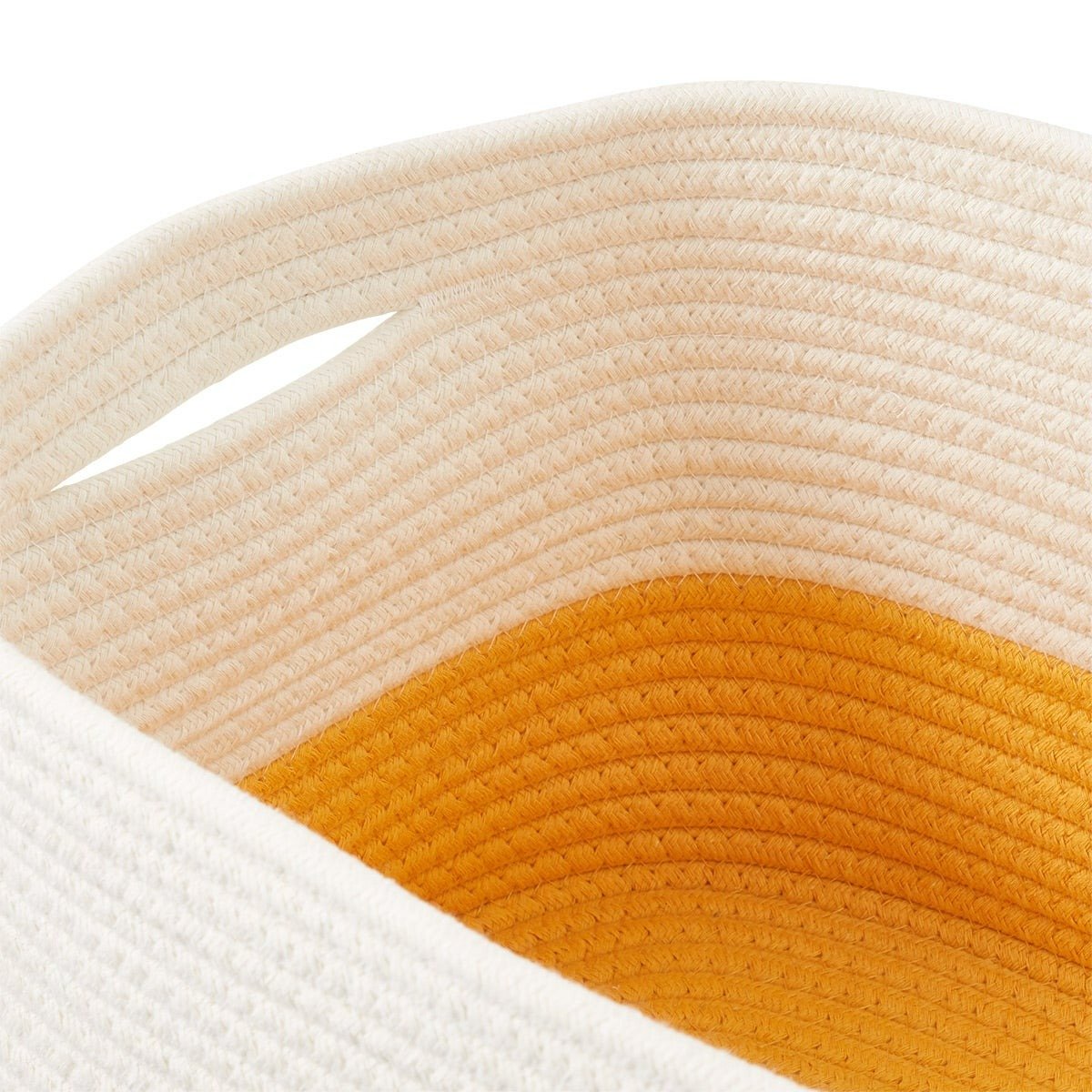 White and light orange cotton rope storage bin – stylish, eco-friendly, and perfect for organizing your home. Ideal for kids’ toys, towels, office, or nursery storage in Pakistan.